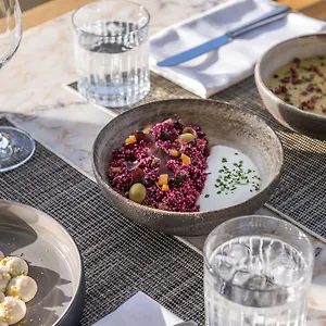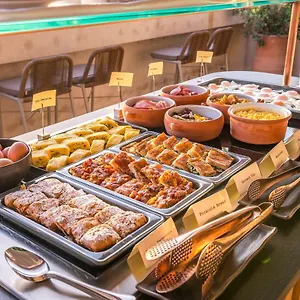 Jeden Morgen wird ein Frühstücksbuffet im Restaurant angeboten. Die Lounge- Bar ist ideal für ein entspannendes Getränk. Das Fresko Yogurt Bar bietet Gerichte der griechischen Küche 150 Meter von der Unterkunft entfernt.